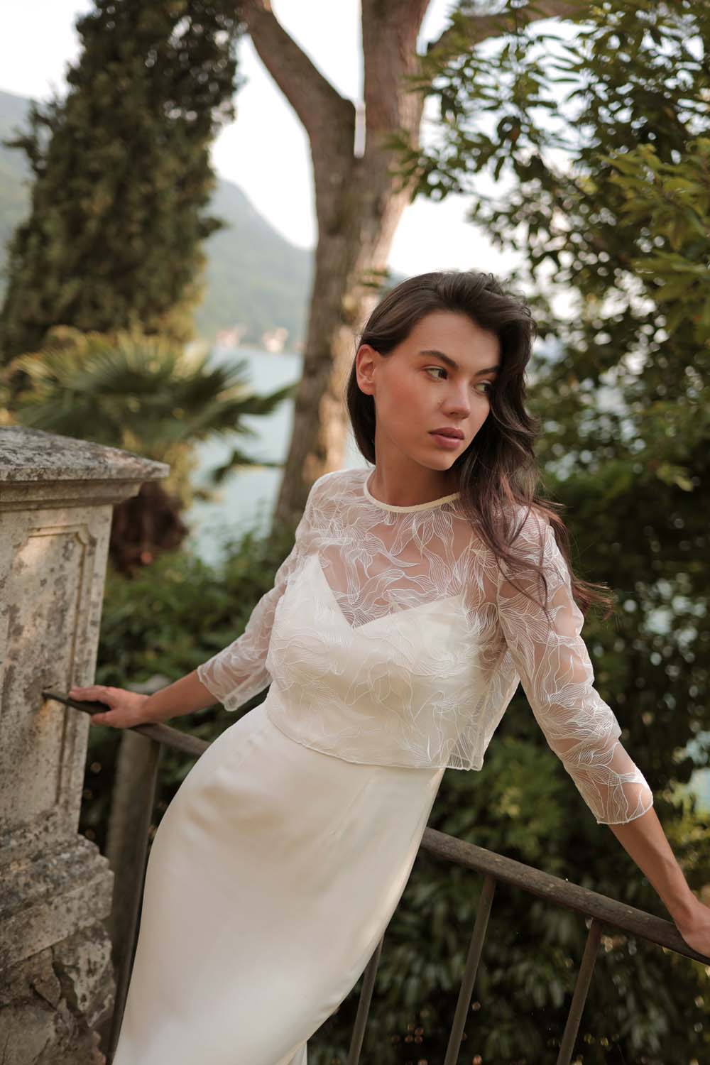 Alexa Birdy, le haut de mariée aérien en tulle brodé au motif poétique.