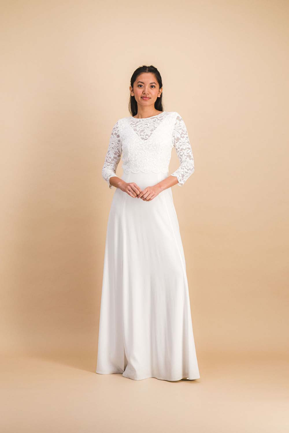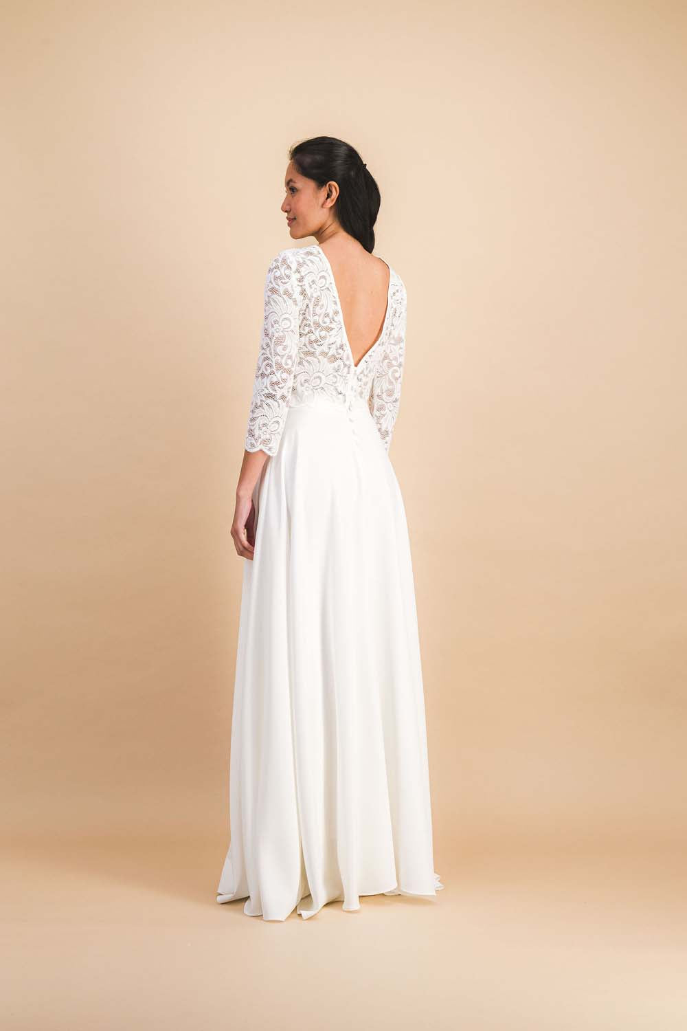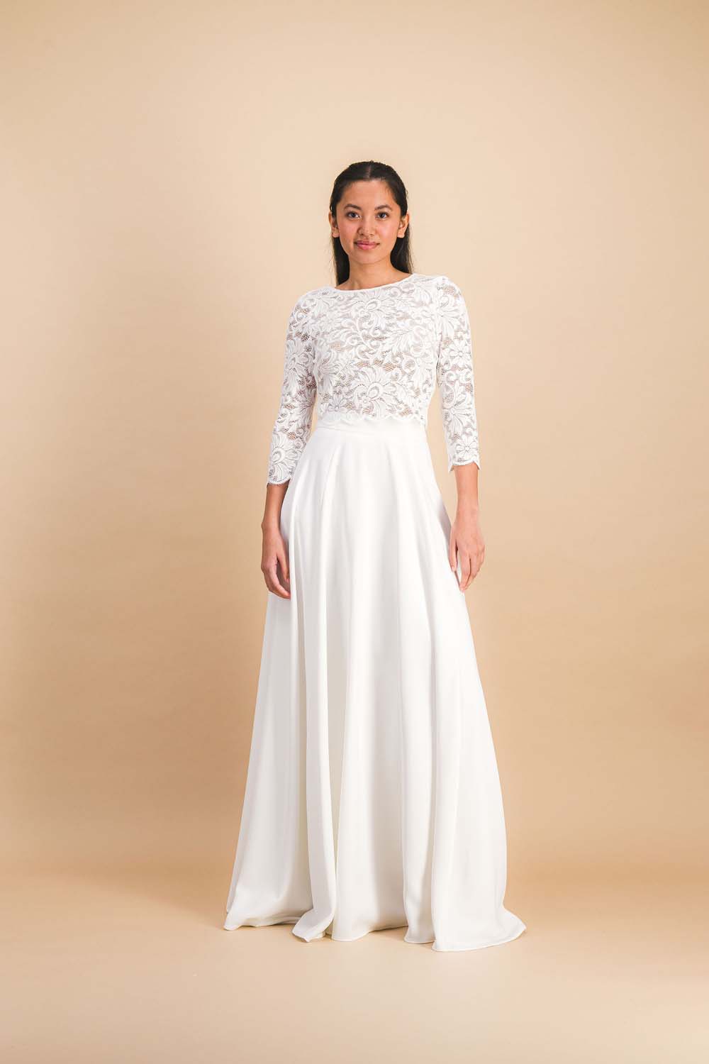 Alina Lily, le haut en dentelle florale qui habille la mariée d’une élégance délicate.