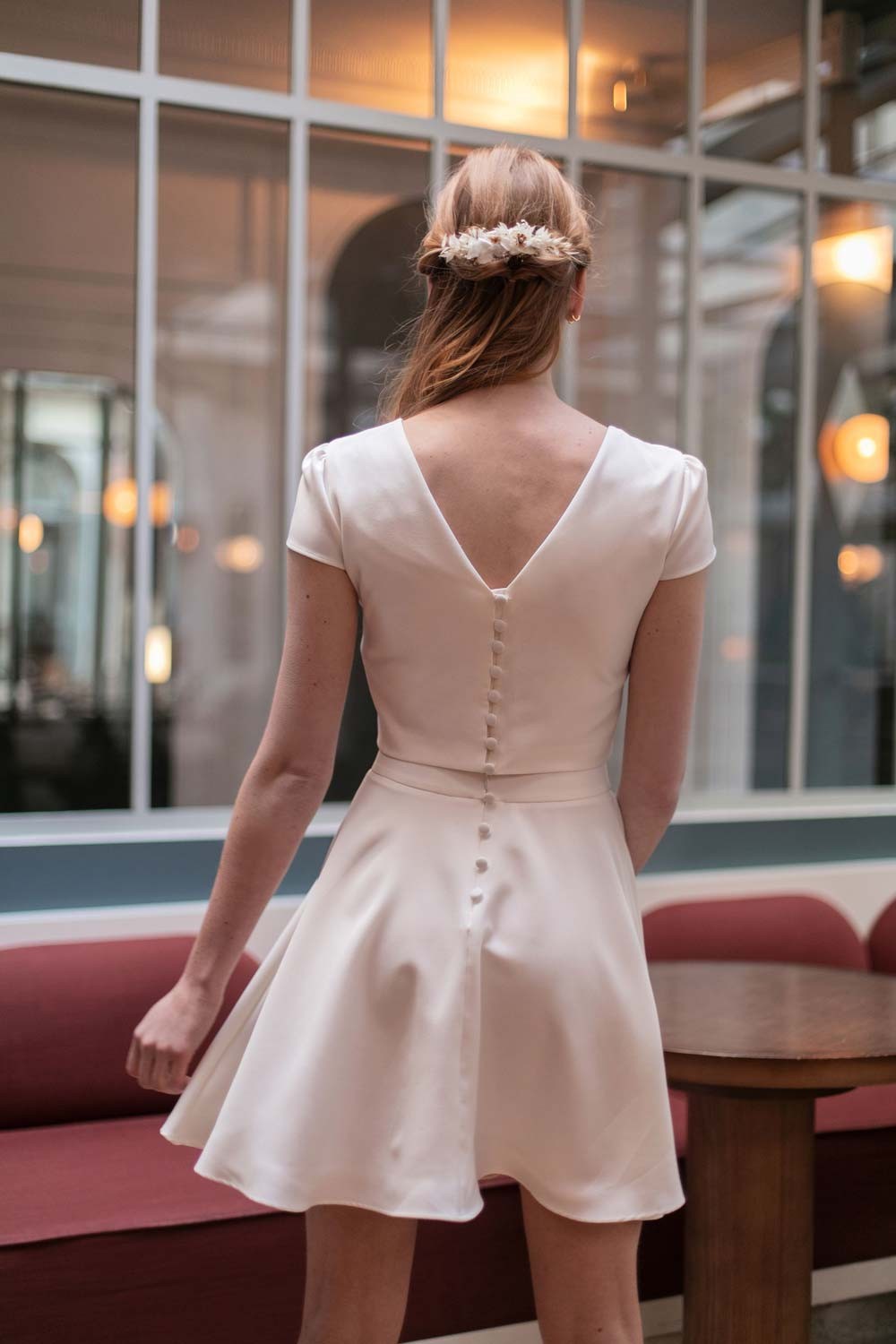 « J’ai choisi la jupe Tina pour mon mariage à la mairie. J’ai hésité entre deux tailles, j’ai donc pu commander les deux et retourner celle qui ne me convenait pas. Le processus était très simple et fluide. Merci pour ces jolies créations, j’ai hâte de porter ma tenue! »