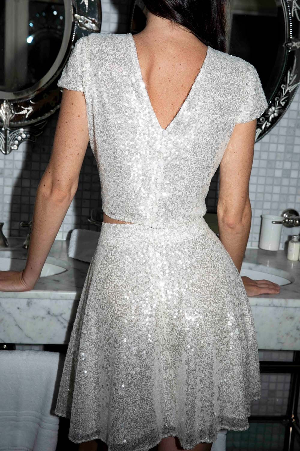 - Short skirt in off-white sequins