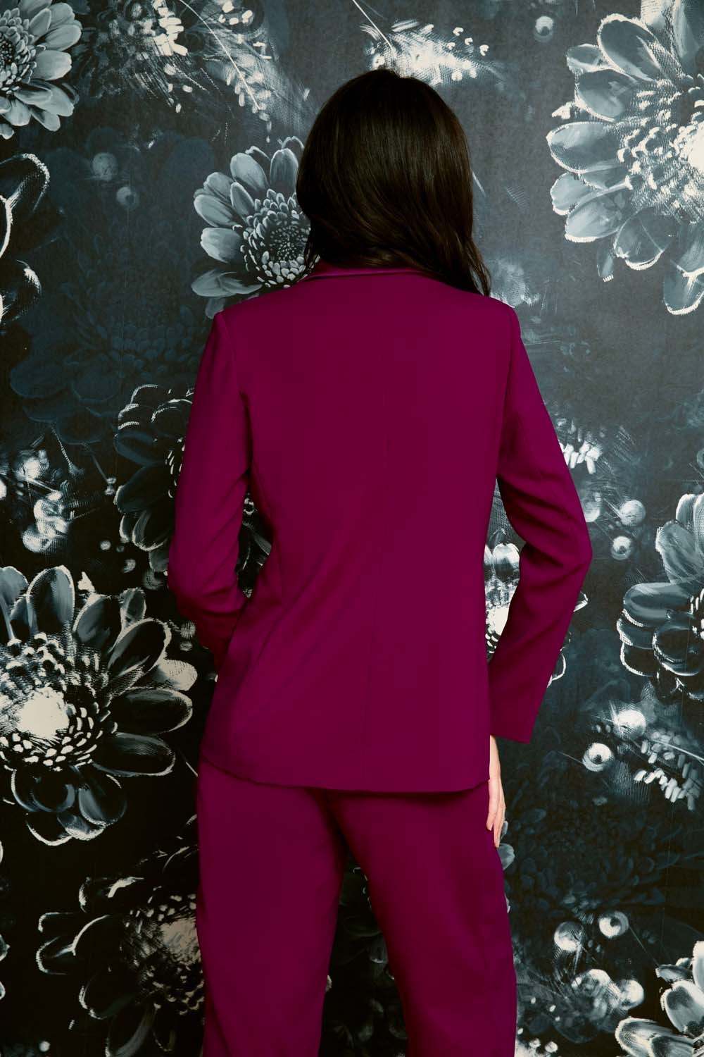- Straight pants in magenta polyester crepe