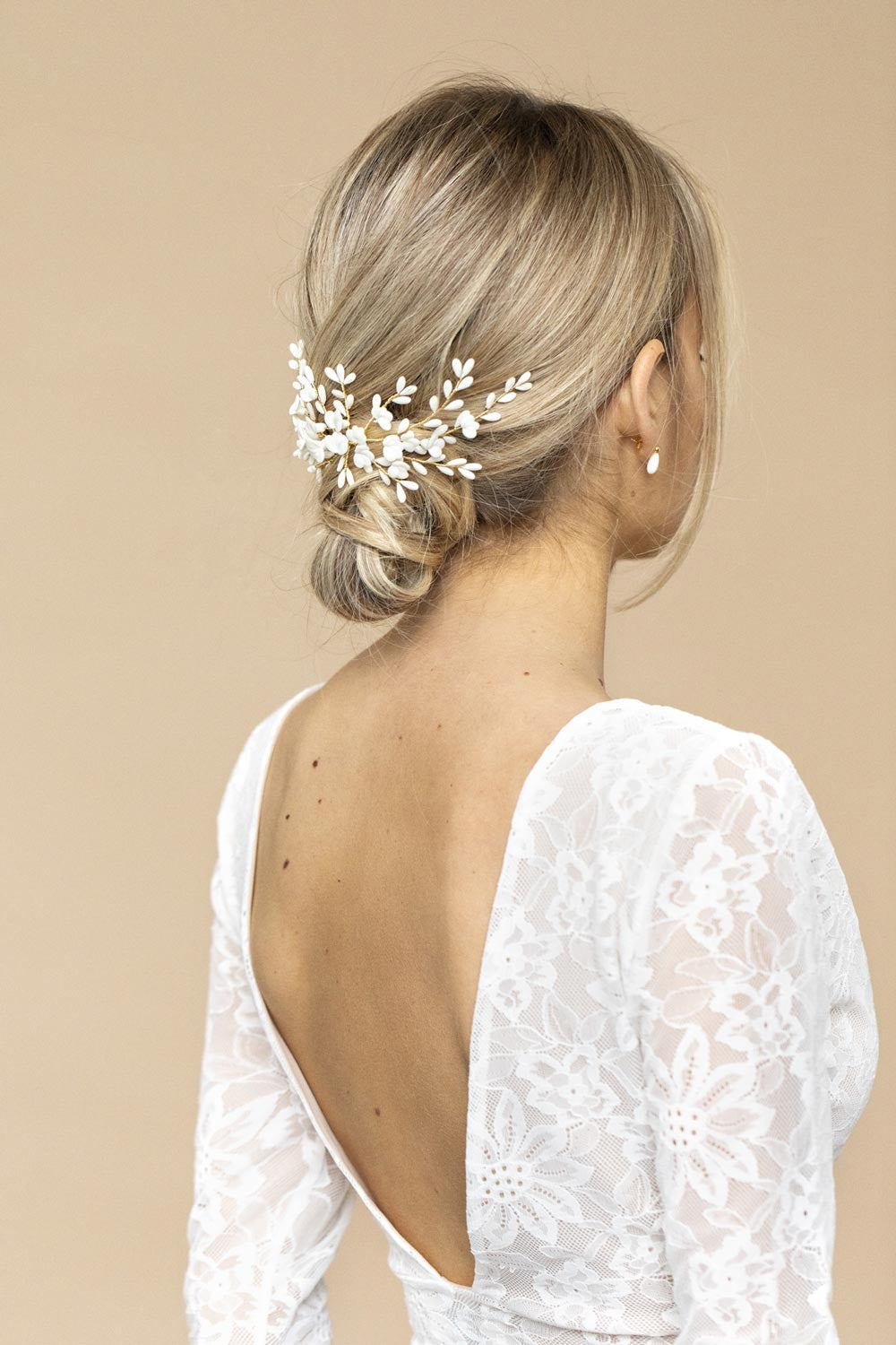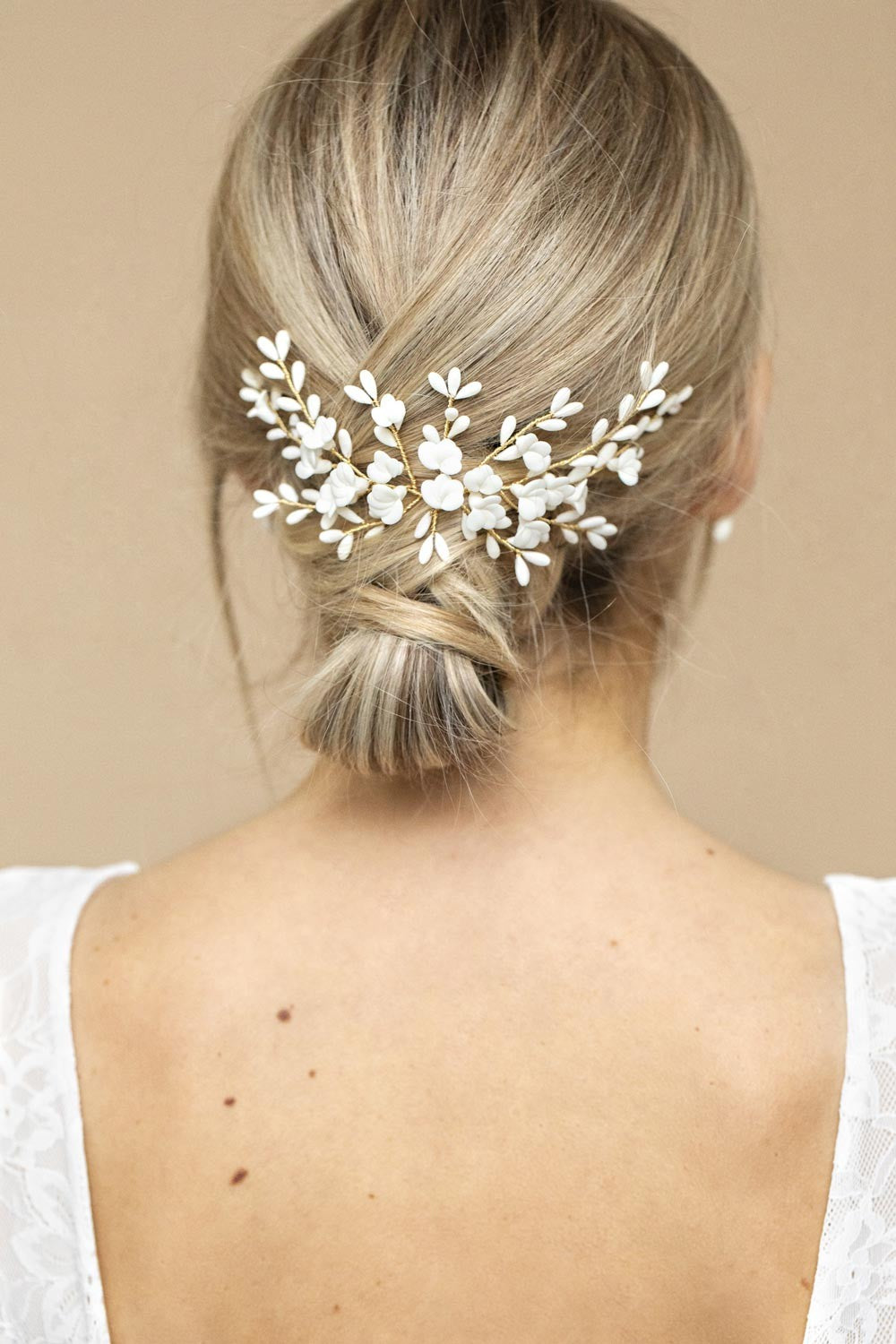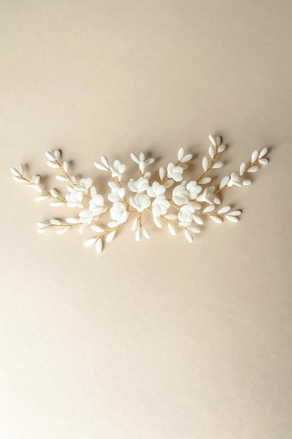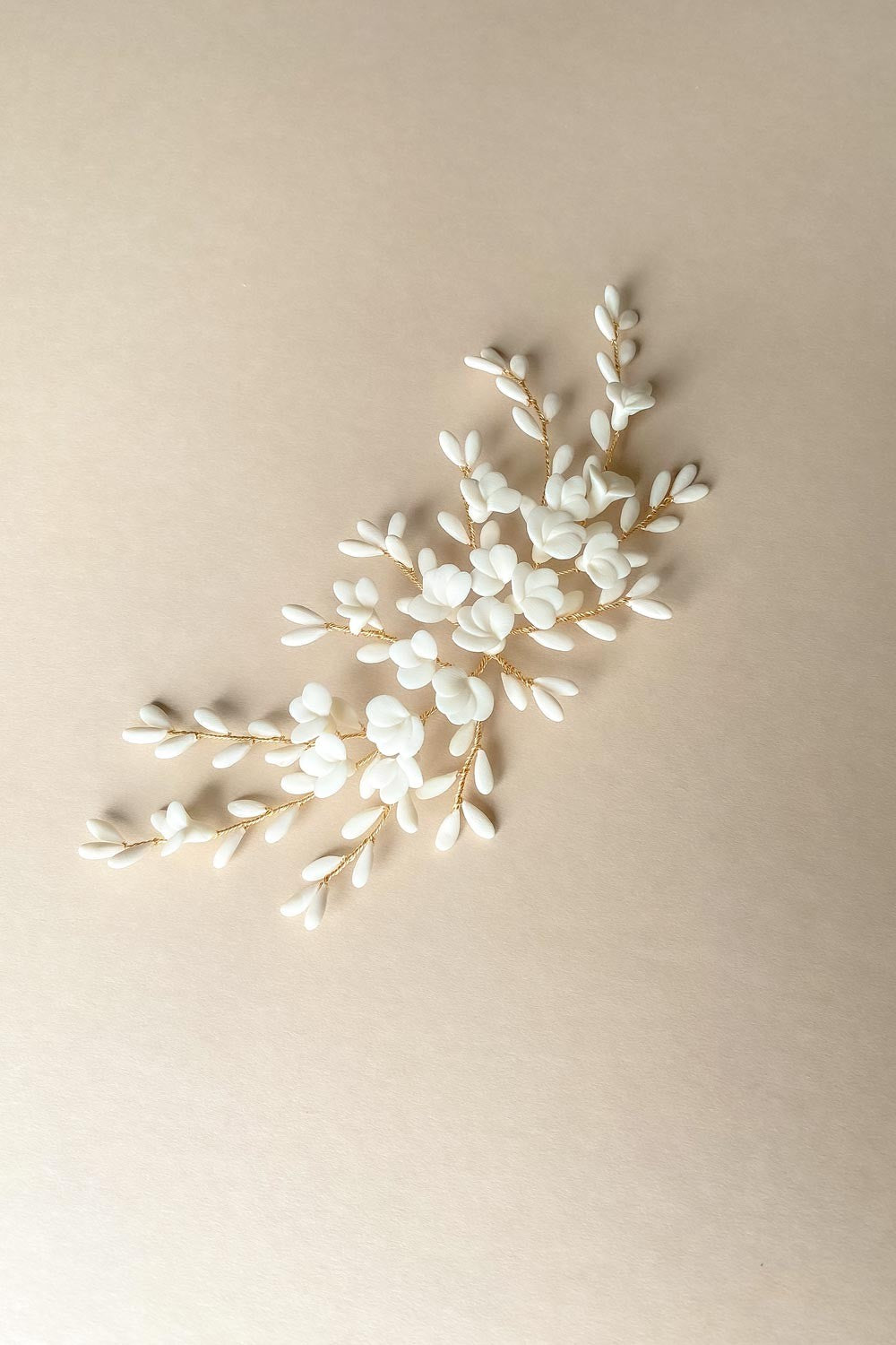 Shine on the most beautiful day of your life and embody Italian class and romance with the Roma comb. Each branch is entirely handmade by the designer in cold porcelain.
