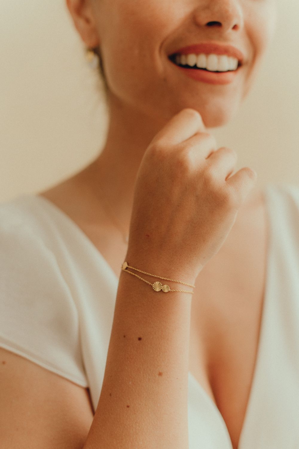 Lyndie : le bracelet double tour, doré à l’or fin, pour une touche élégante et moderne le jour du mariage.