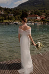 Bustier avec traîne amovible, froncés en tulle blanc cassé