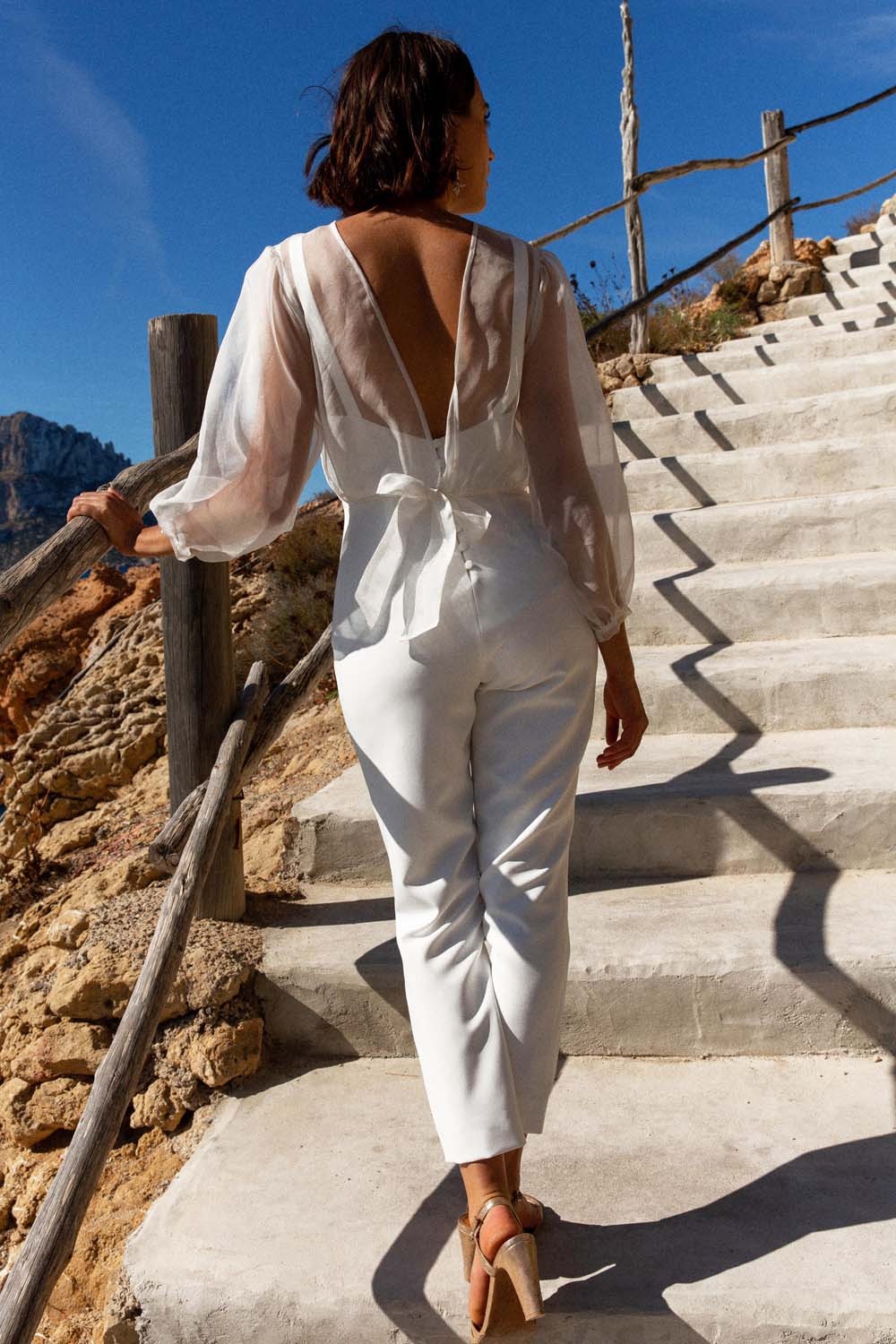 - Combinaison pantalon ajustée en crêpe de polyester blanc cassé