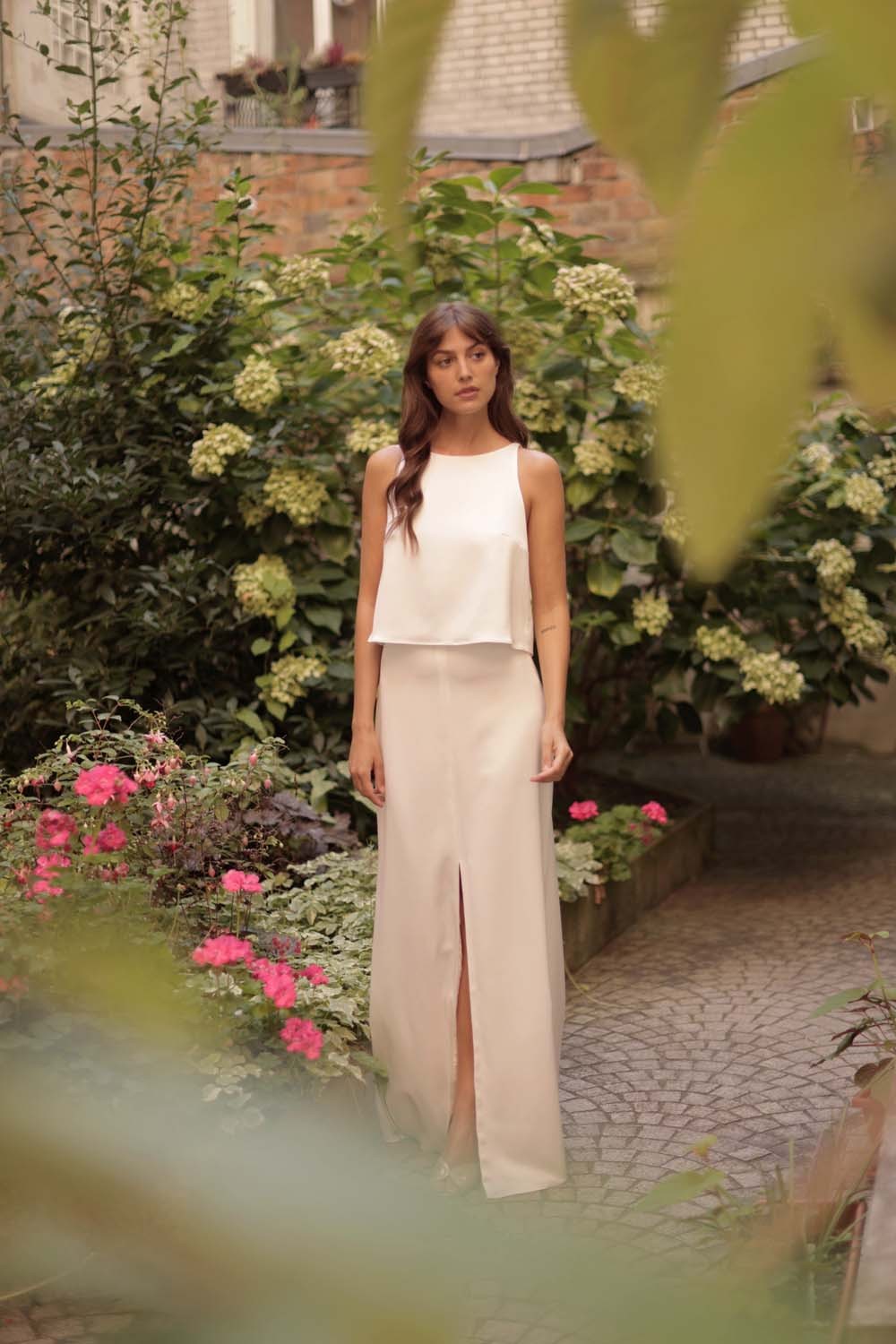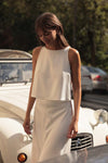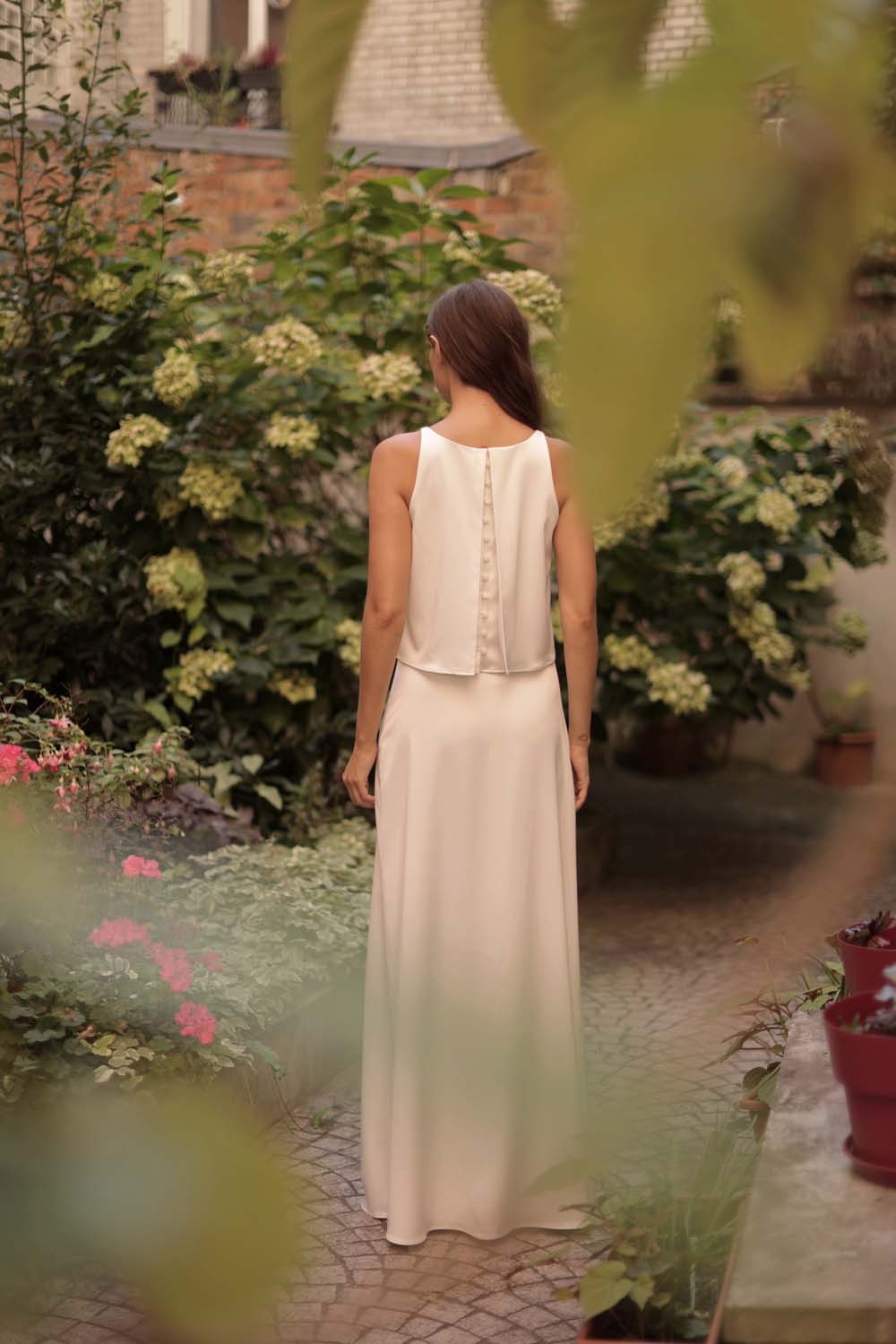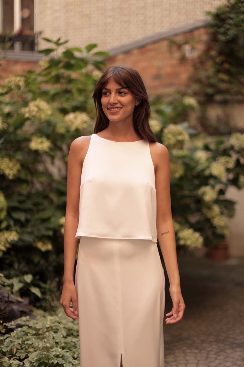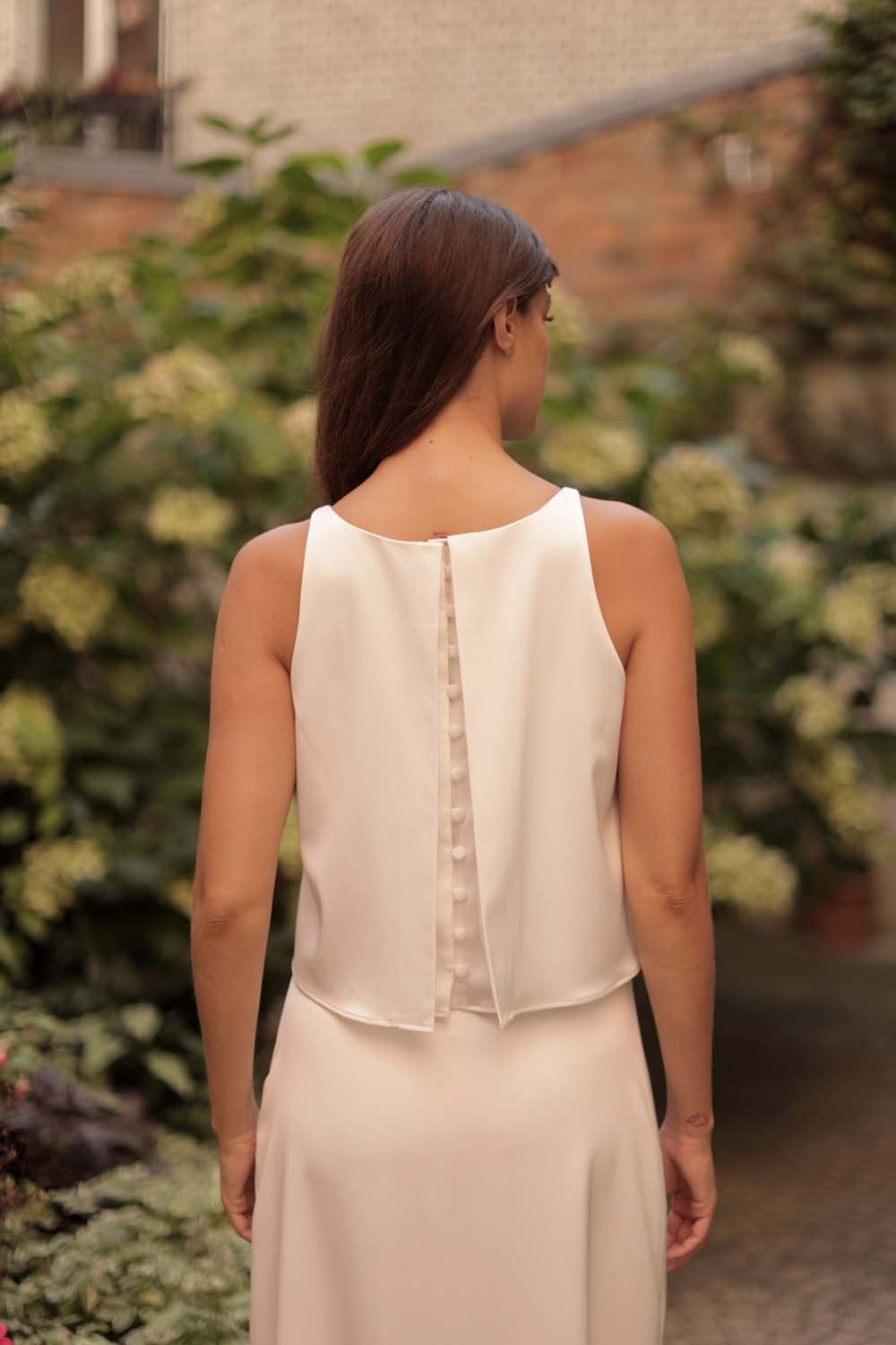 Un haut de mariée satiné pour un look moderne et chic.