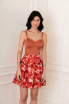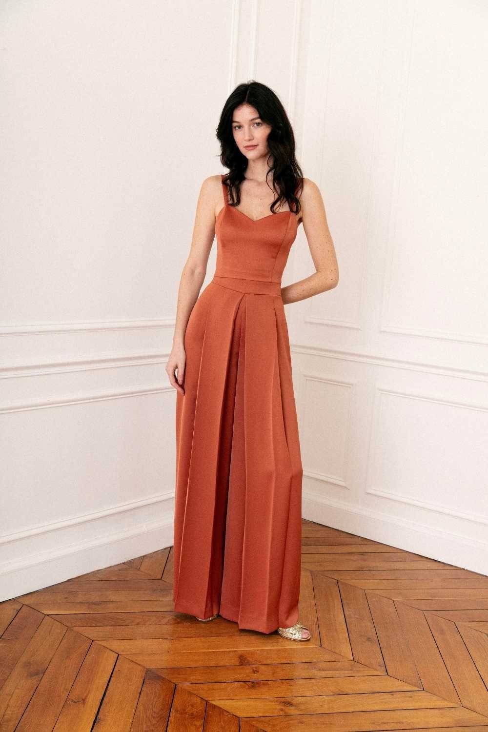 - Haut bustier à décolleté légèrement cœur en crêpe de satin terracotta