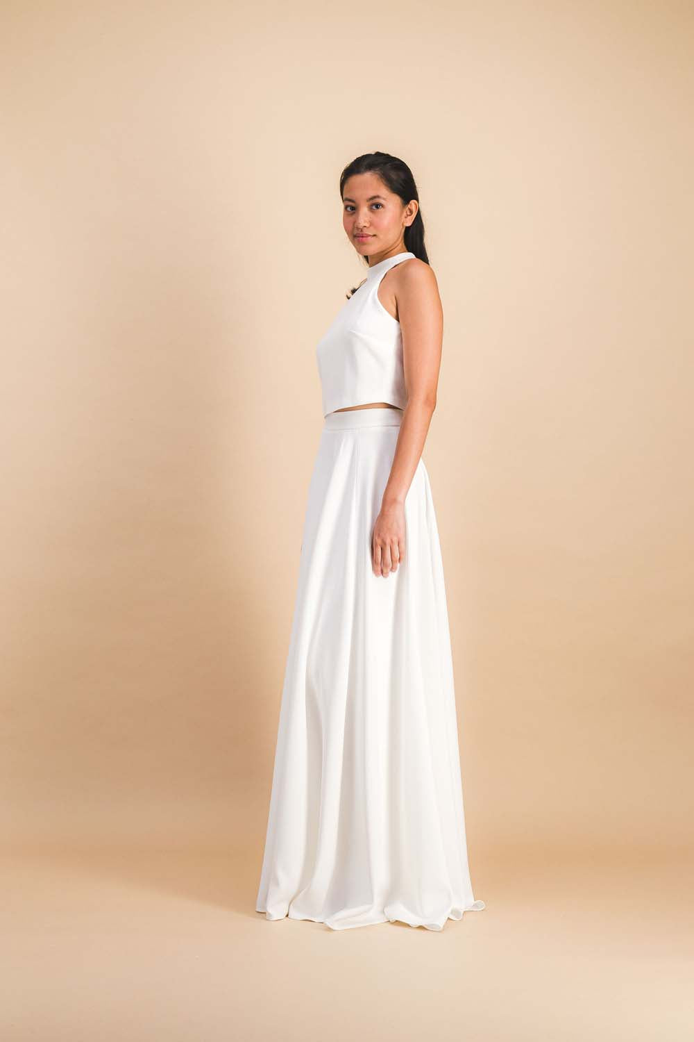 Saddie, le haut de mariée chic et moderne qui sublime la silhouette avec élégance.