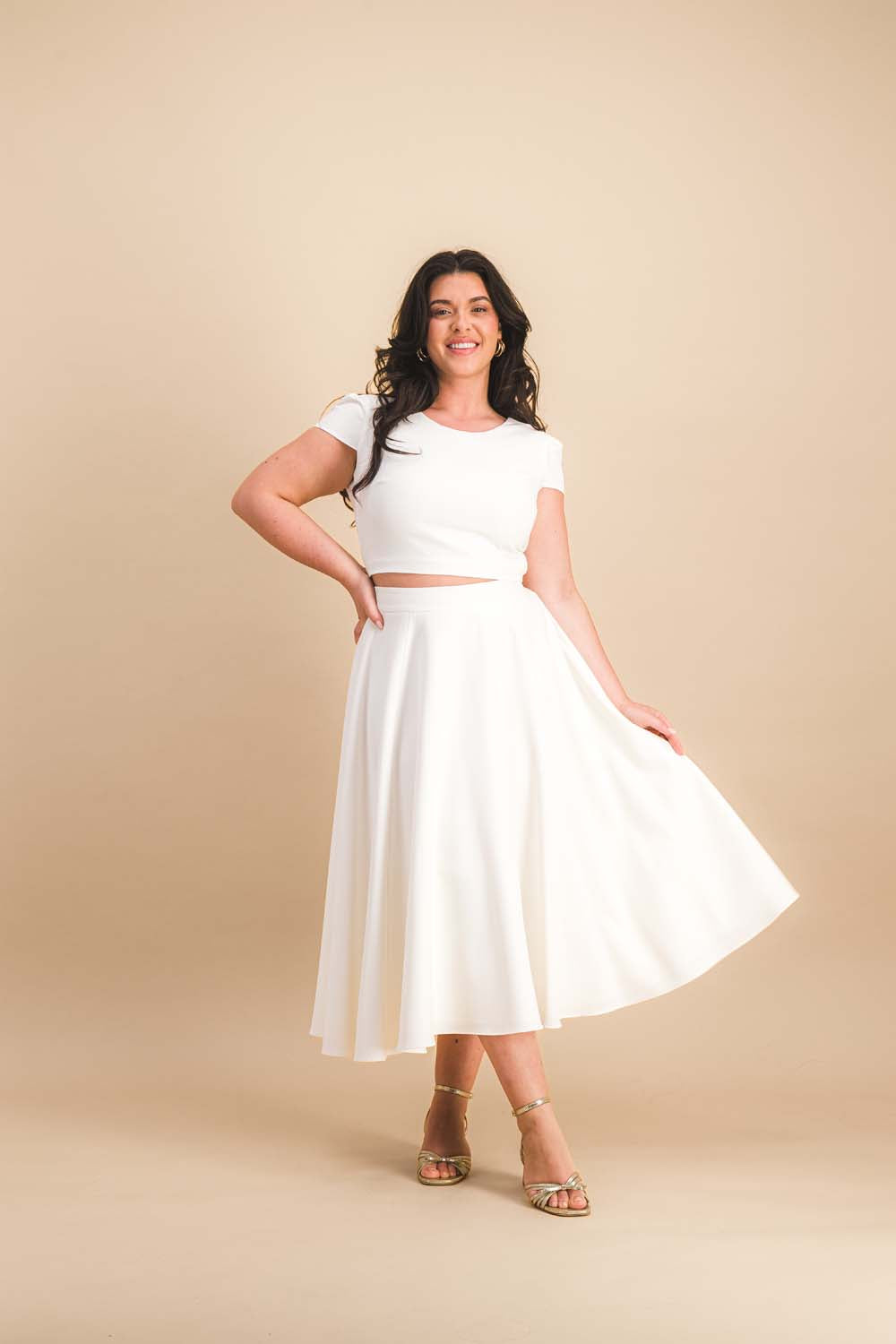 « J’ai commandé la jupe Albertina avec le haut Madeleine pour mon brunch. C’était parfait! Je pense même pouvoir reporter l’ensemble dans la vie de tous les jours »