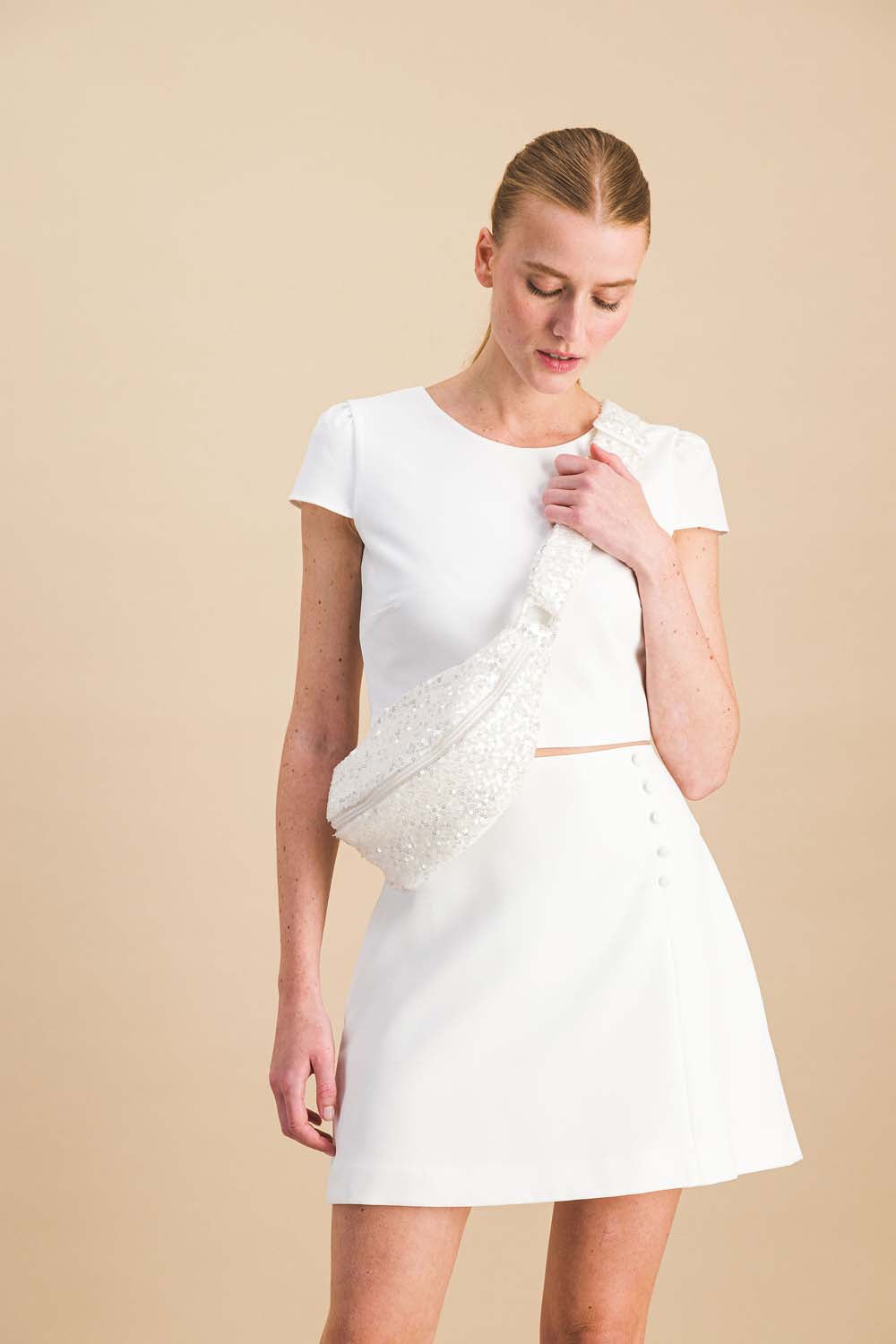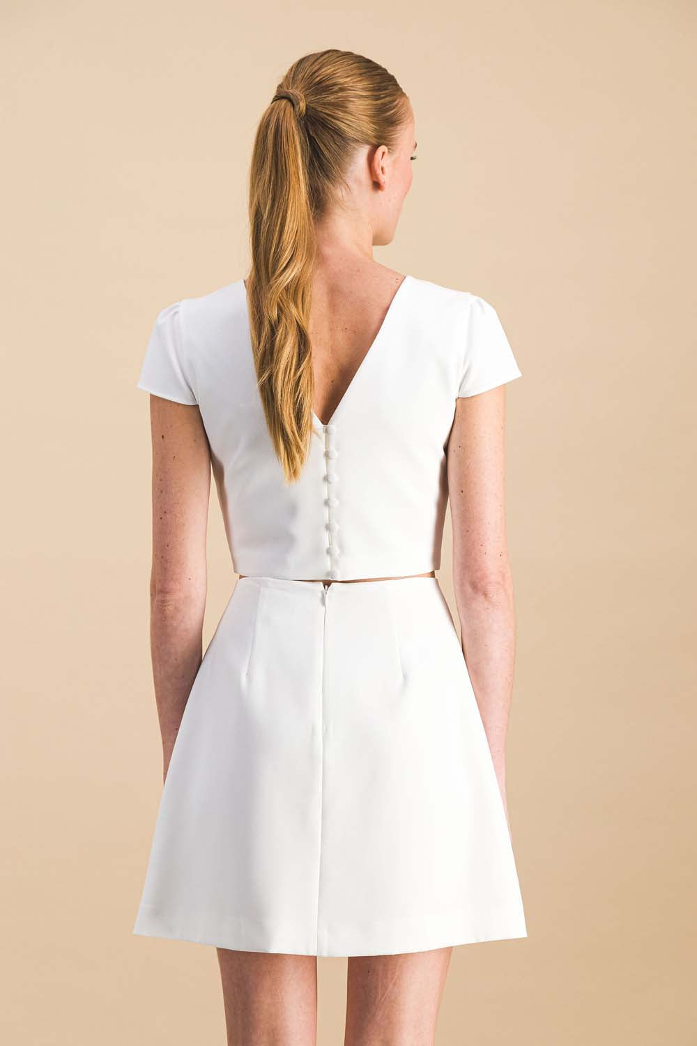 Minimaliste et élégante, la jupe Amélia est l’alliée parfaite d’un mariage civil au style épuré et raffiné.