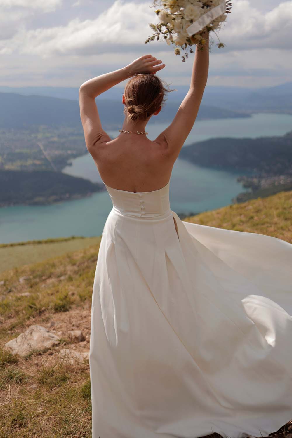 Le charme d’une jupe portefeuille pour une mariée libre et moderne.