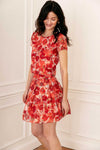 - Jupe courte évasée en mousseline de lurex imprimé fleurs