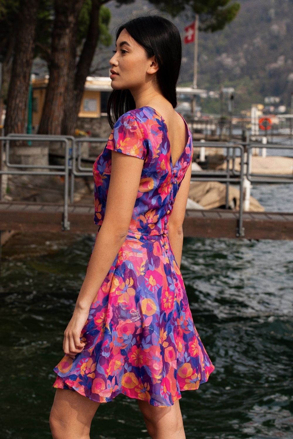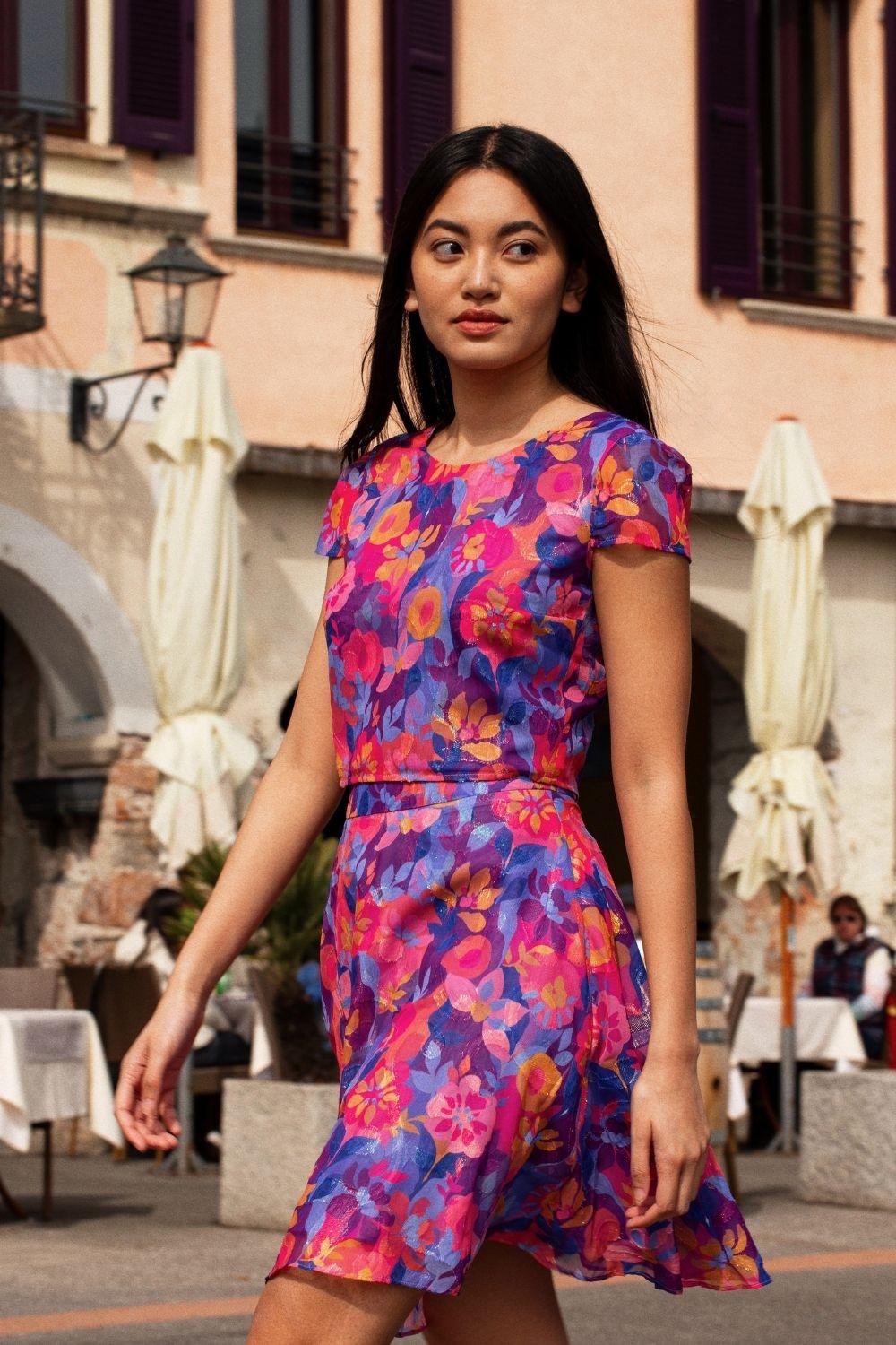 Laissez-vous envoûter par la splendeur de la jupe Tina et son tissu en mousseline imprimé aux couleurs de l'été.