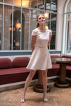 « J’ai choisi la jupe Tina pour mon mariage à la mairie. J’ai hésité entre deux tailles, j’ai donc pu commander les deux et retourner celle qui ne me convenait pas. Le processus était très simple et fluide. Merci pour ces jolies créations, j’ai hâte de porter ma tenue! »
