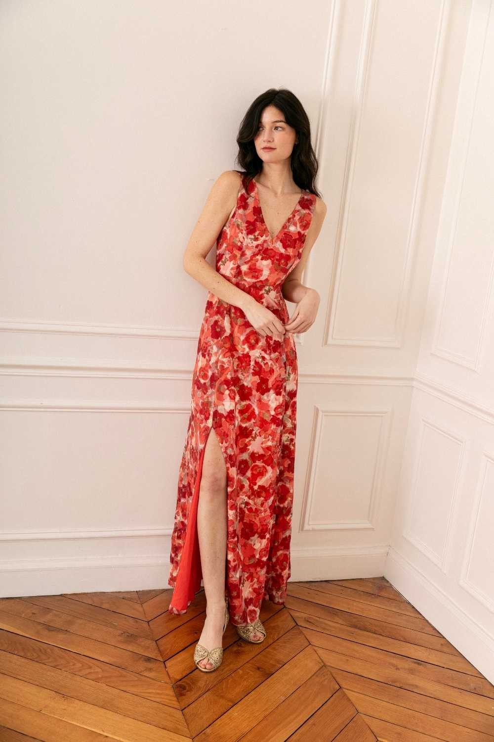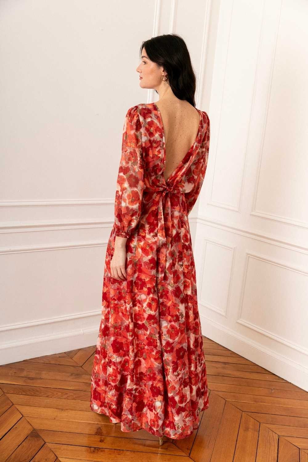 - Robe longue fluide en tissu en mousseline de lurex , imprimé fleuri