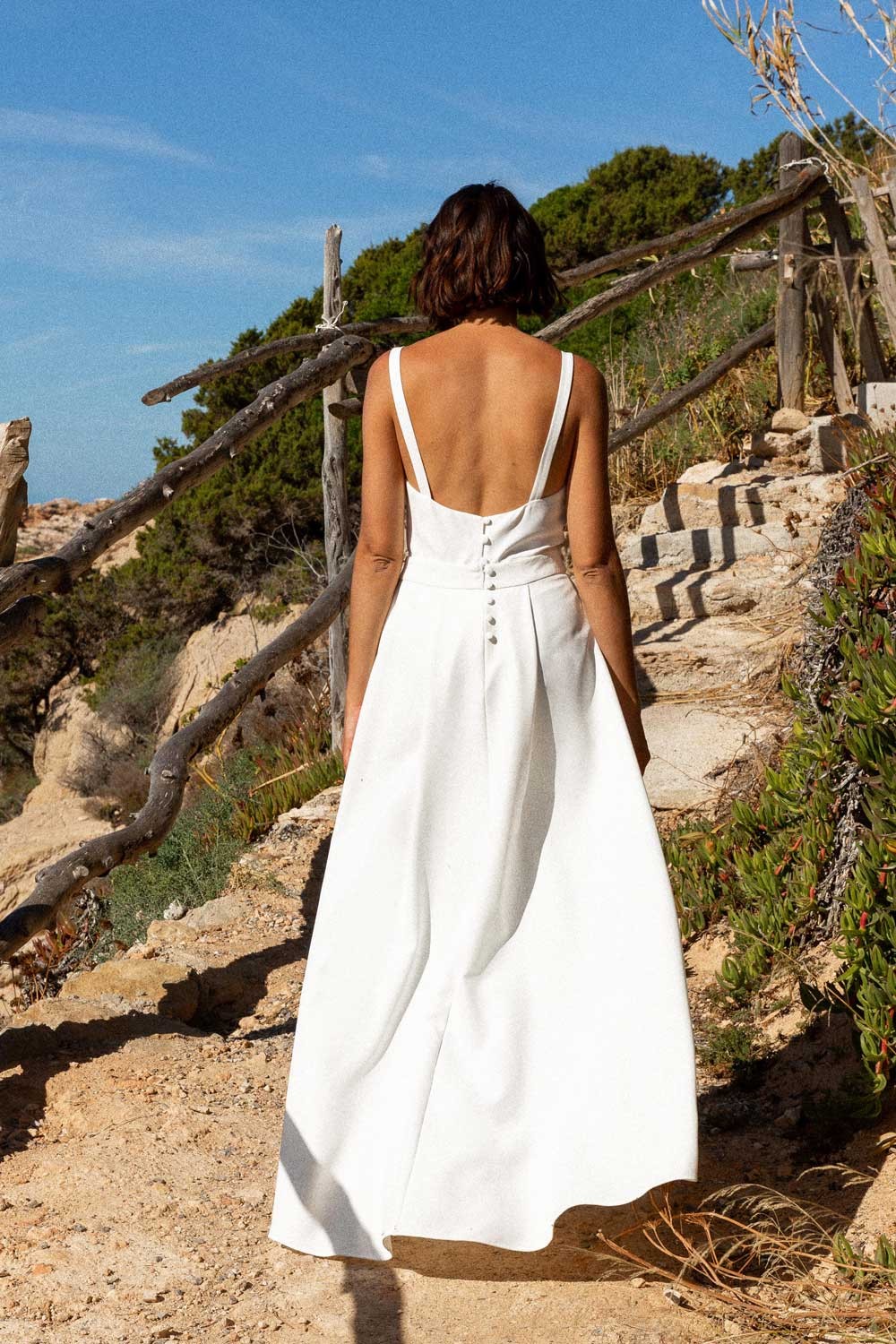 - Sur-jupe longue avec ouverture milieu devant et plis, en crêpe de polyester blanc cassé